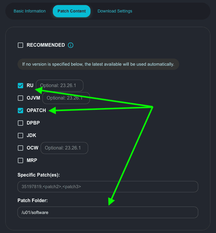 I hope you know that you can use AutoUpgrade-Composer, helping you create the configuration files to download and create the new Oracle Home for 26ai.