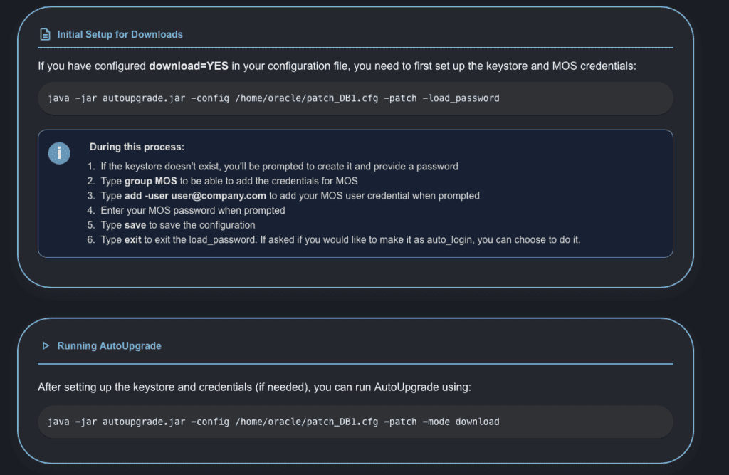 Continuing with the scroll, you have the instructions on how to run AutoUpgrade in Download mode: