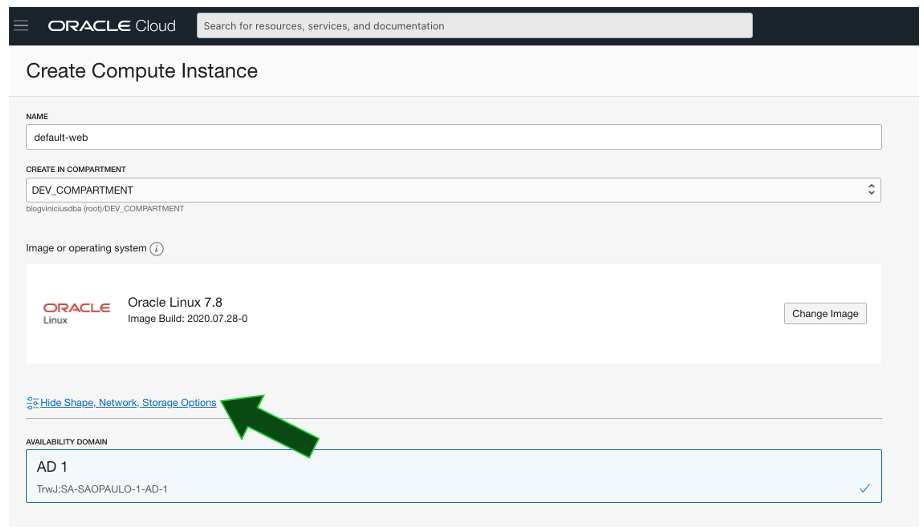 Para termos os nossos recursos no OCI organizados, vamos criá-los dentro de um único Compartment. Isso não quer dizer que essa é a opção recomendada num ambiente corporativo. O ideal é que os recursos sejam divididos de forma a garantir o princípio de menos privilégios concedidos (least privilege principle), e, além disso, se possa dividir os recursos entre os compartments de forma a garantir que seja possível realizar o tracking de custos dos recursos. Claro que também é possível realizar isso através de tags. Mas, isso será discutido em outro momento. 😃