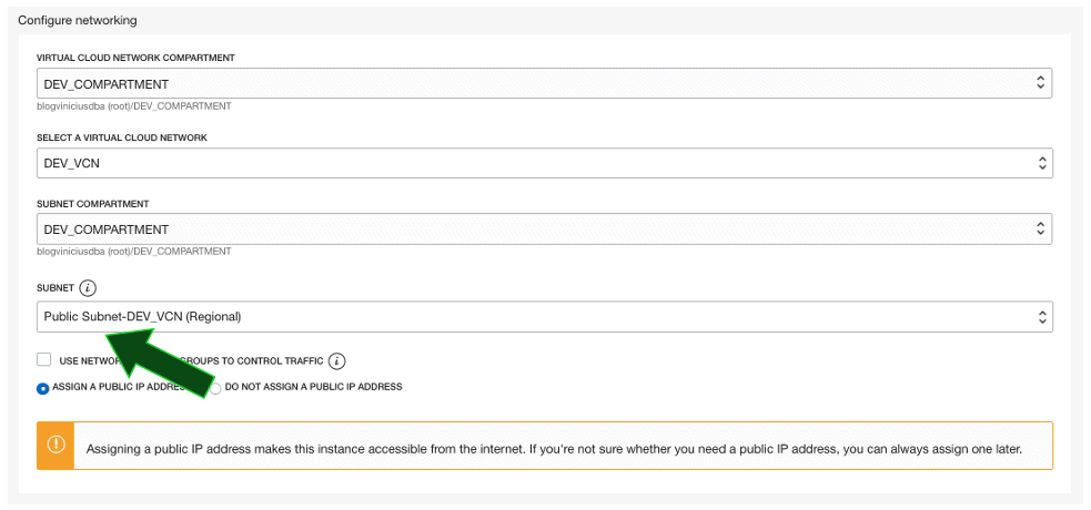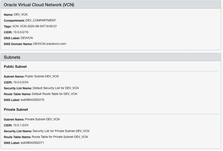 Virtual Cloud Network Compartment: DEV_COMPARTMENT