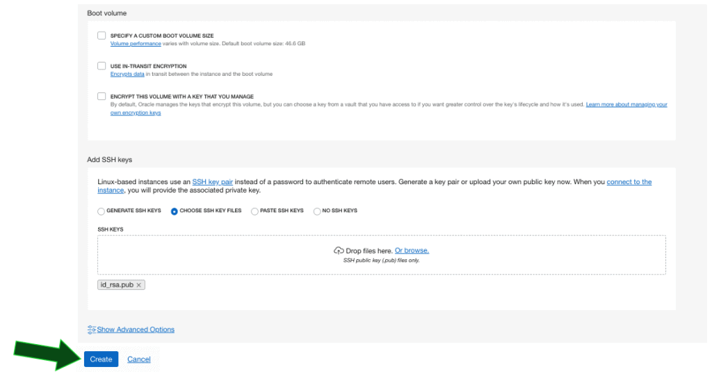 Choose SSH Key Files: escolha uma chave já existente. Caso contrário, uma chave SSH pode ser criada.