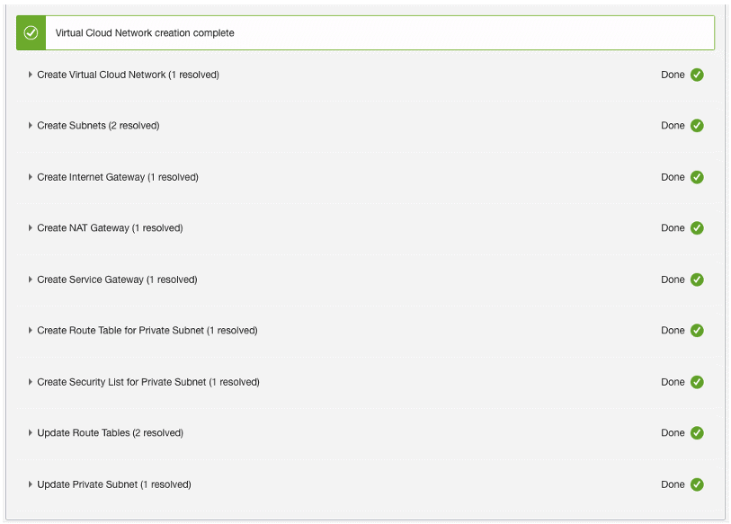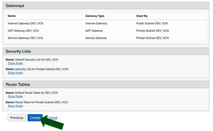 Revise os dados sobre a VCN e clique em Create: