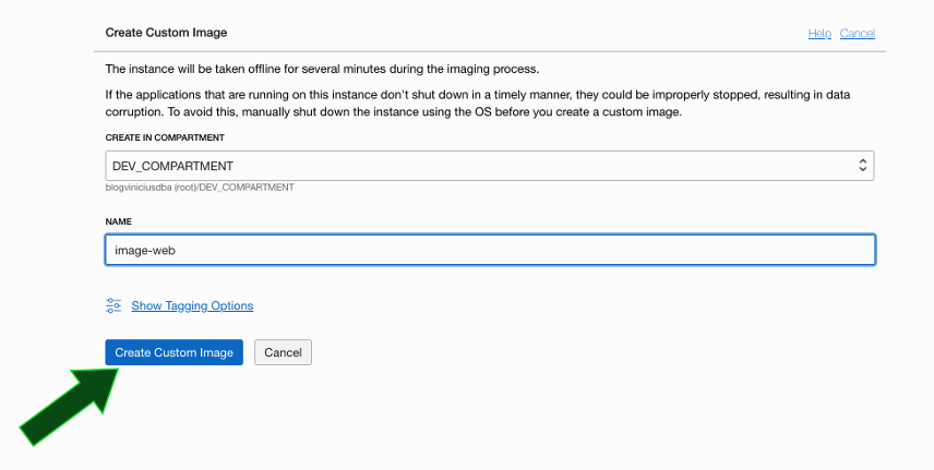 Em seguida, defina um nome para a Custom Image. No exemplo utilizei o nome image-web e clique em Create Custom Image: