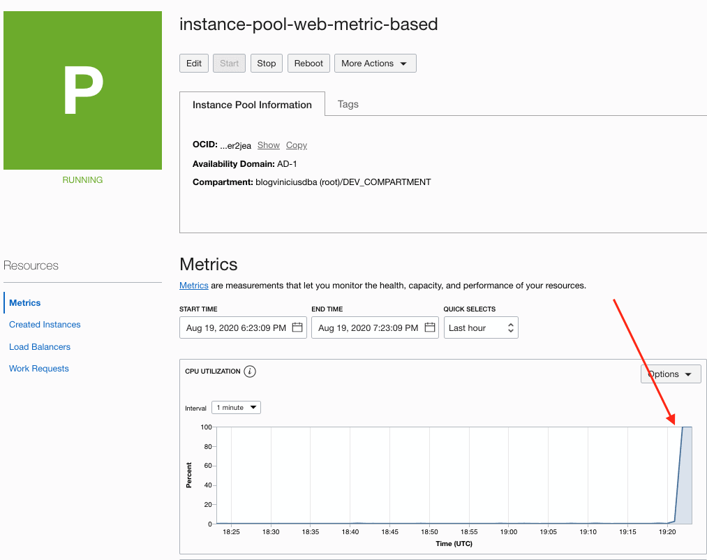 Se observamos no pool instance-pool-web-metric-based, observaremos que a utilização de CPU sofreu um aumento: