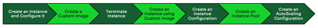 - Custom Image: para que novas instâncias sejam adicionadas ao pool, caso você tenha uma Custom Image, ela poderá ser a imagem padrão para provisionamento de novas instâncias. Para que você tenha uma Custom Image, significa que você precisa criar uma instância, instalar os produtos que necessita e ajustar as configurações necessárias para que a instância esteja pronta para servir de padrão para as próximas;
