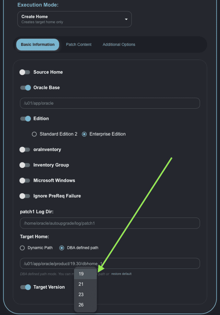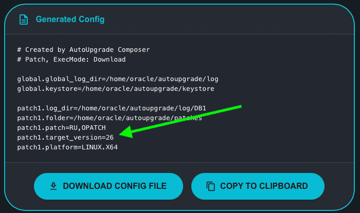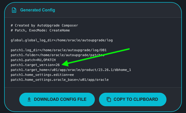 - target_version=26: now we have the option to use the keyword target_version=26 with AutoUpgrade. Until the last version, we were allowed to use up to target_version=23. But as of now, target_version=26 is just an alias for target_version=23. However, as Oracle changed the naming for his breakthrough new database version to 26ai, it makes sense having the target_version=26.