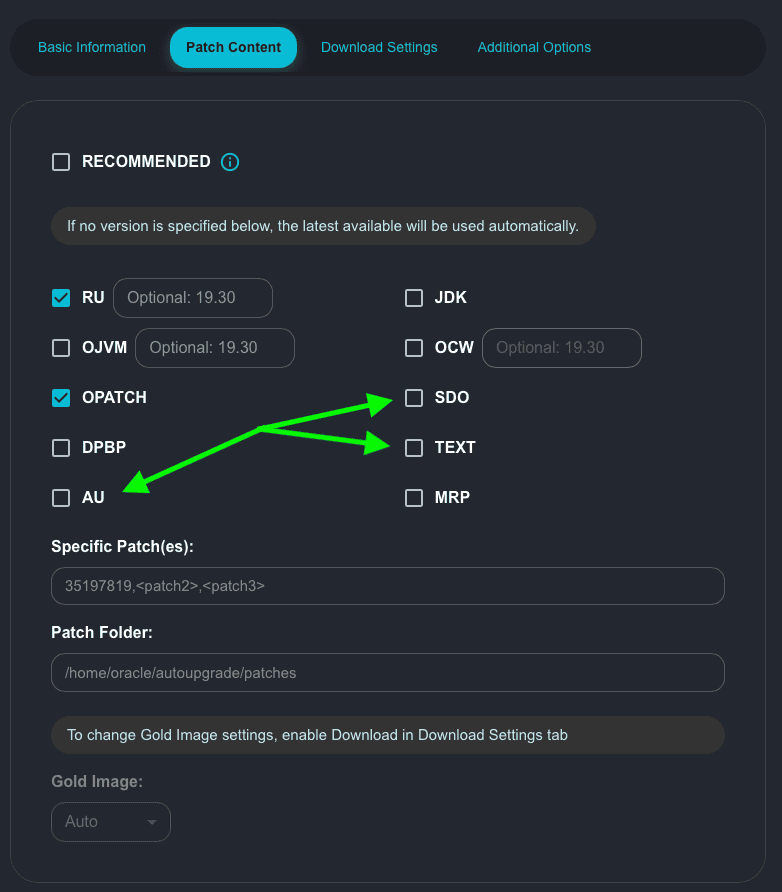 - Oracle Text: AutoUpgrade can also perform the download of the Oracle Text patch.