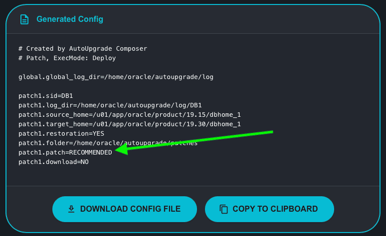 Tip: if you are planning to apply a patch in your Oracle RAC and the Source_Home is an Oracle RAC Oracle Home, and you select RECOMMENDED, AutoUpgrade will also download/apply the OCW patch for you.