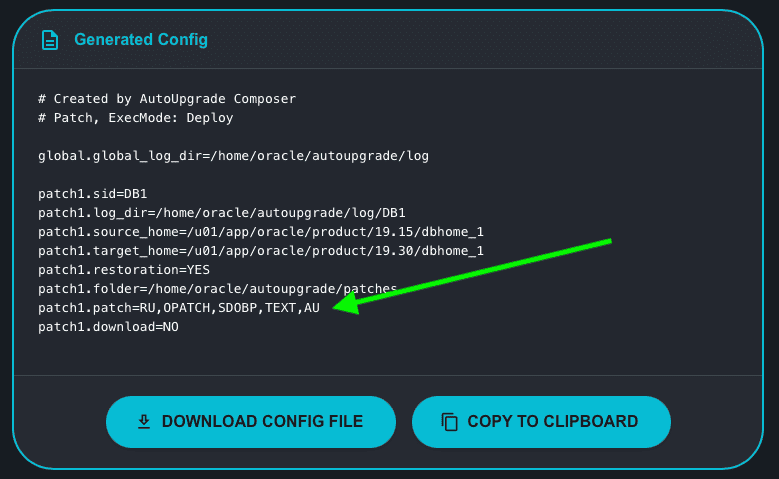 - Oracle Text Patch: AutoUpgrade now also allows us to download the latest Oracle Text patches using the keyword TEXT in the patch parameter.