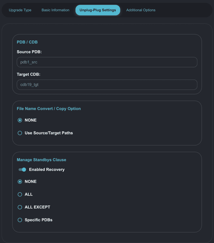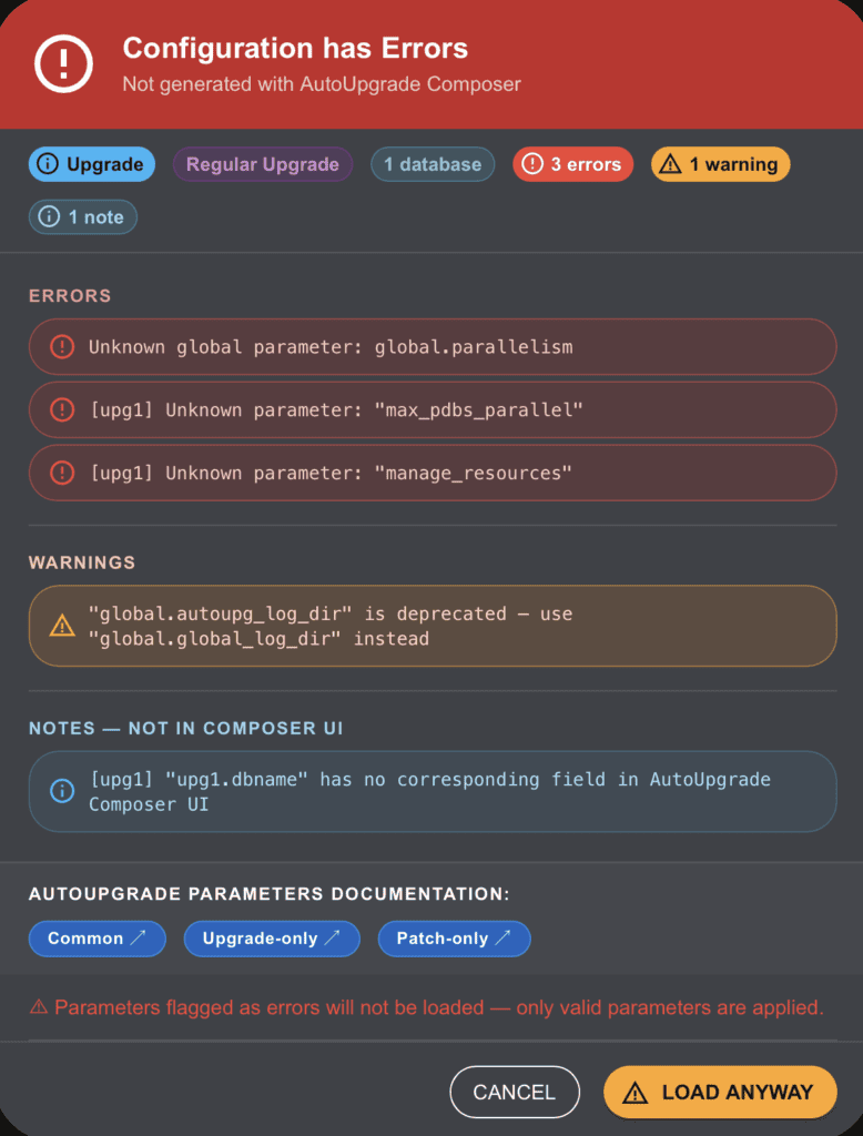 - [upg1] “upg1.dbname” has no corresponding field in AutoUpgrade Composer UI