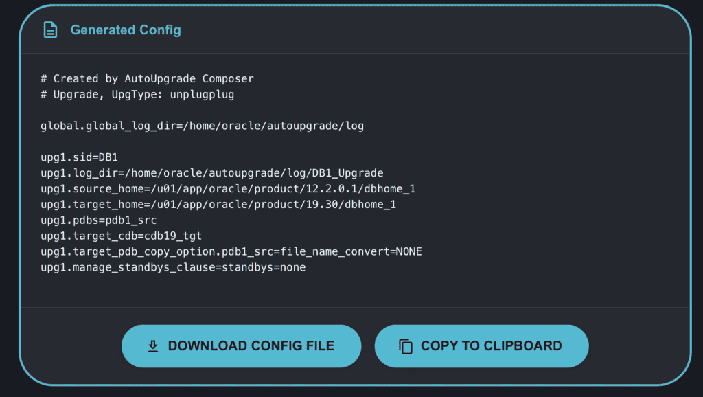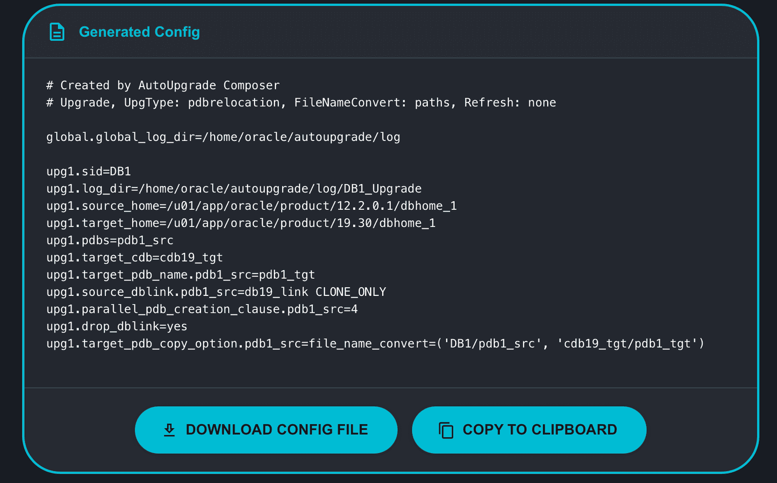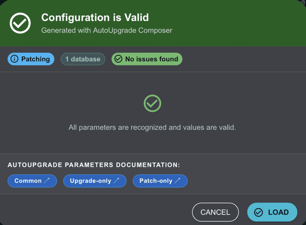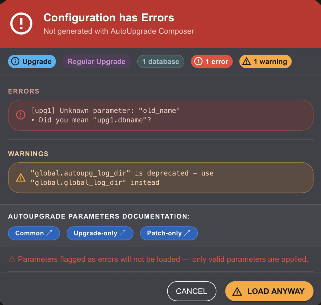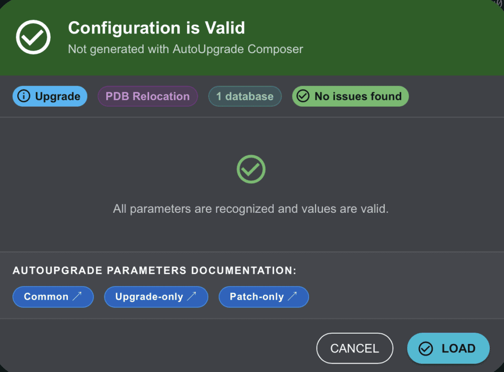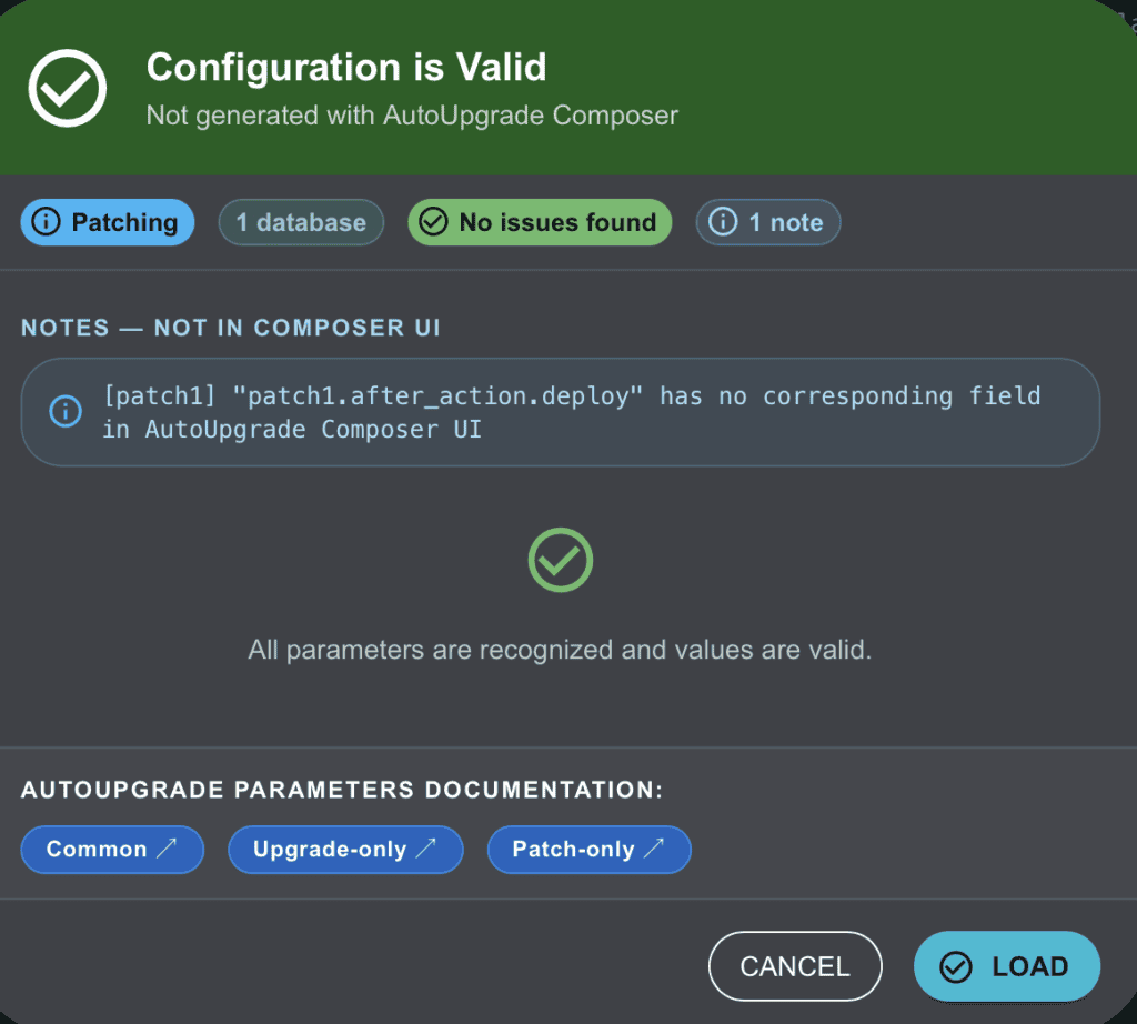 In previous versions of AutoUpgrade Composer we had the capability to load a configuration file generated only by the AutoUpgrade Composer itself.