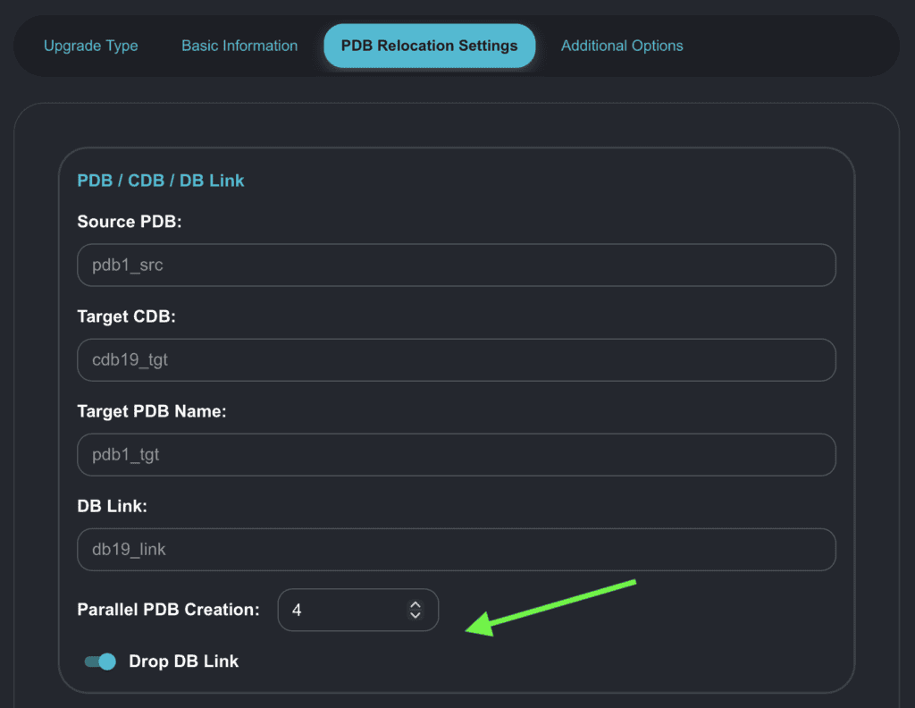 You can now select a number of parallel execution servers to use when creating a pluggable database. You can also select if you want to drop the DB Link once the PDB clone operation is completed.