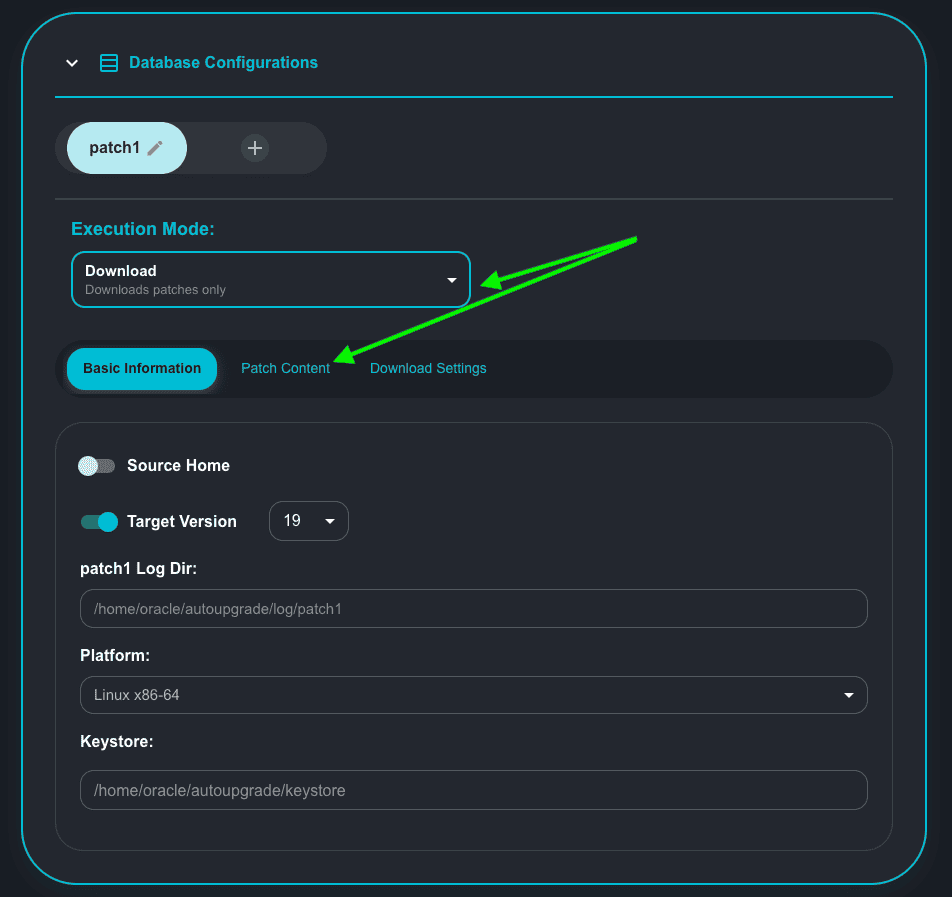 patch1.log_dir=/home/oracle/autoupgrade/log/DB1