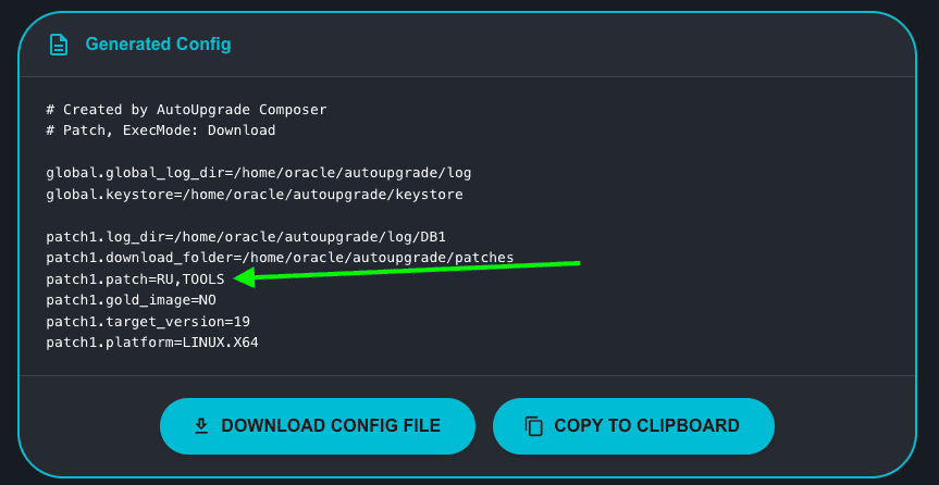 java -jar autoupgrade.jar -config tools.cfg -patch -mode download