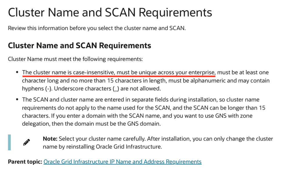 Cluster Name and SCAN Requirements